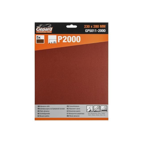 Шлифлист 230х280мм Р2000 бум.осн. 5шт. GEPARD (GP5011-2000)