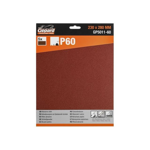 Шлифлист 230х280мм Р60 бум.осн. 5шт. GEPARD (GP5011-60)