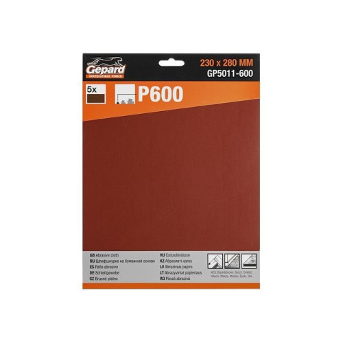 Шлифлист 230х280мм Р600 бум.осн. 5шт. GEPARD (GP5011-600)