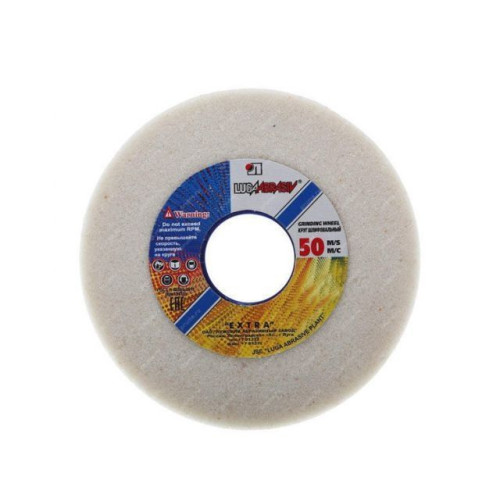 электрокорунд белый, 40 шлифзерно, твердость среднемягкие, структура средняя, связка керамическая, рабочая скорость 50 м/с, Обработка закаленных деталей из углеродистых, быстрорежущих и нержавеющих сталей. Обработка тонких деталей и инструментов (зубья, ножи, сверла, резцы), заточка.