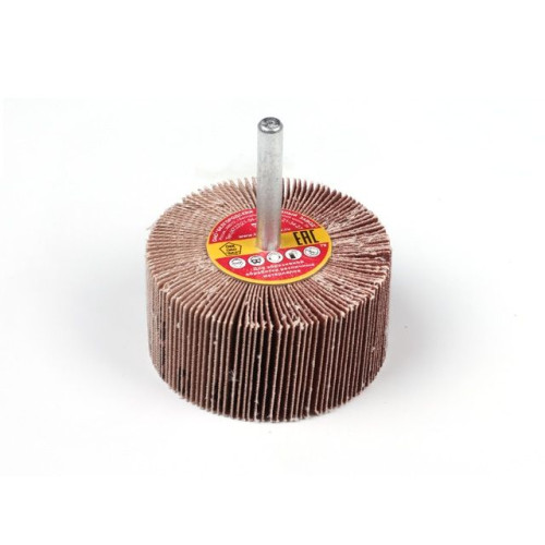 Круг лепестковый с оправкой, используют для шлифования и полирования труднодоступных поверхностей, снятия заусенцев в отверстиях, удаления окалины, ржавчины.