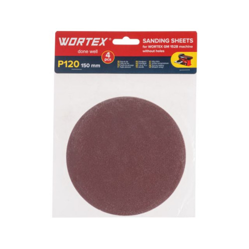 Шлифлист 150мм P120 без отв. 4 шт. для станка WORTEX GM 1528