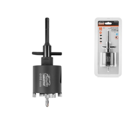 Применение: для высверливания глухих подрозеточных отверстий и отверстий для распределительных монтажных коробок в армированном бетоне (железобетоне), бетоне, кирпиче, газосиликатных блоках.