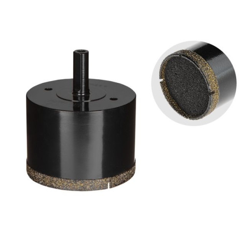 Рекомендации: для охлаждения водой перед началом засверливания следует намочить поролоновую губку, чтобы она вобрала в себя жидкость, окунув коронку в воду. Начинать засверливание держа коронку под углом. Для работы лучше всего использовать аккумуляторную дрель, сочетающую высокий крутящий момент и невысокие обороты. Рекомендуемая частота вращения от 200 до 300 обмин. Обязательное охлаждение водой. Рекомендуется использовать кондуктор для предотвращения проскальзывания при начальном засверливании,