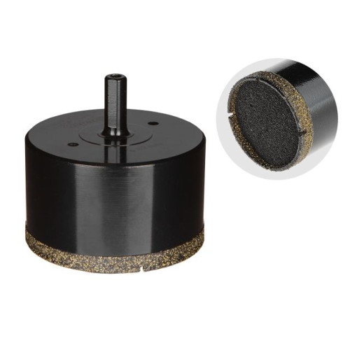Рекомендации: для охлаждения водой перед началом засверливания следует намочить поролоновую губку, чтобы она вобрала в себя жидкость, окунув коронку в воду. Начинать засверливание держа коронку под углом. Для работы лучше всего использовать аккумуляторную дрель, сочетающую высокий крутящий момент и невысокие обороты. Рекомендуемая частота вращения от 200 до 300 обмин. Обязательное охлаждение водой. Рекомендуется использовать кондуктор для предотвращения проскальзывания при начальном засверливании,