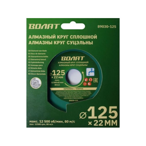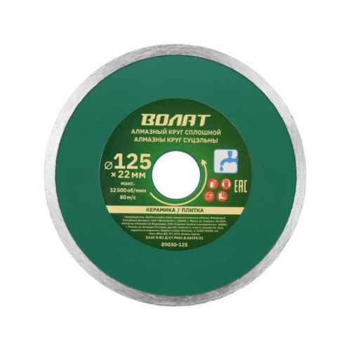 Алмазный круг 125х22 мм по керамике сплошн. ВОЛАТ