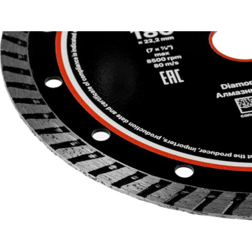 Свойства: имеют косую насечку по боковым сторонам обода, за счет чего увеличивается механическая прочность, а также повышается уровень отвода тепла при работе. Обеспечивают ровный, аккуратный и быстрый рез бетонных поверхностей. Высокий ресурс использования обеспечивается улучшенным качеством алмазных зерен и оптимально подобранной металлической связкой. Охлаждение водой увеличивает ресурс круга,
