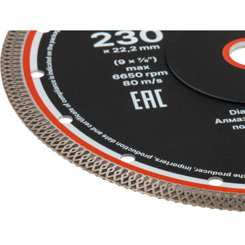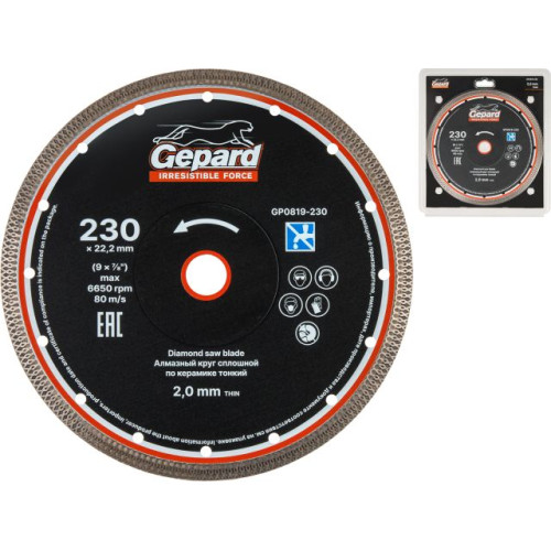 Алмазный круг 230х22 мм по керамике сплошн. тонкий GEPARD