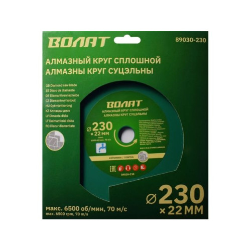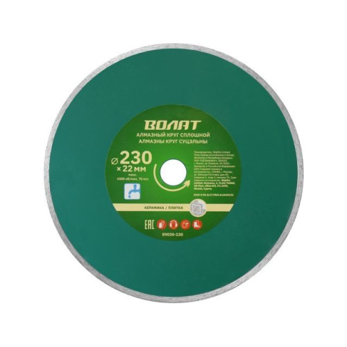 Алмазный круг 230х22 мм по керамике сплошн. ВОЛАТ