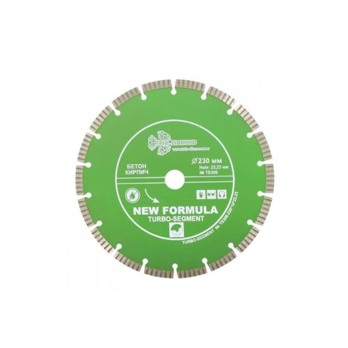 Диск сочетает в себе лучшие качества дисков Turbo (скорость реза и дополнительное охлаждение) и Segment (повышенная износостойкость). Не нуждается в дополнительном охлаждении водой. Применяется для резки бордюрного камня, мрамора, тротуарной плитки, шамотного кирпича и других высоко-, среднеабразивных, абразивных материалов.