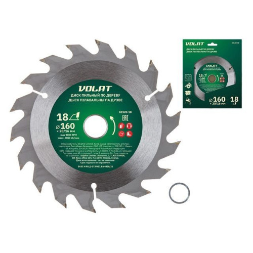 Диск пильный 160х20/16 мм 18 зуб. по дереву ВОЛАТ