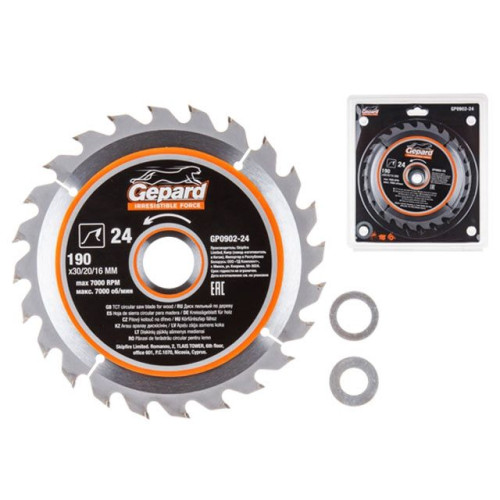 Диск пильный 190х30/20/16 мм 24 зуб. по дереву GEPARD
