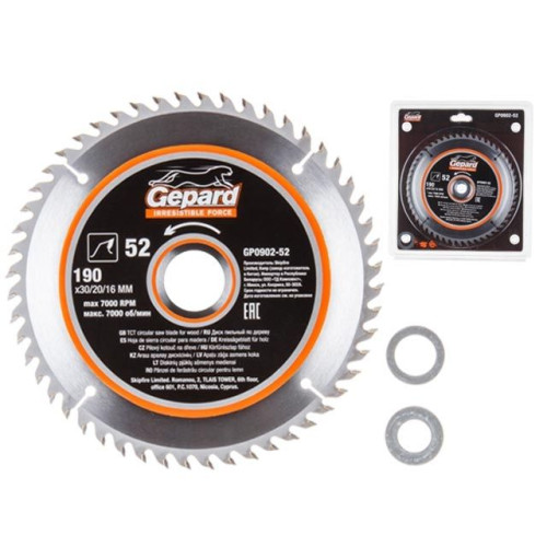 Диск пильный 190х30/20/16 мм 52 зуб. по дереву GEPARD