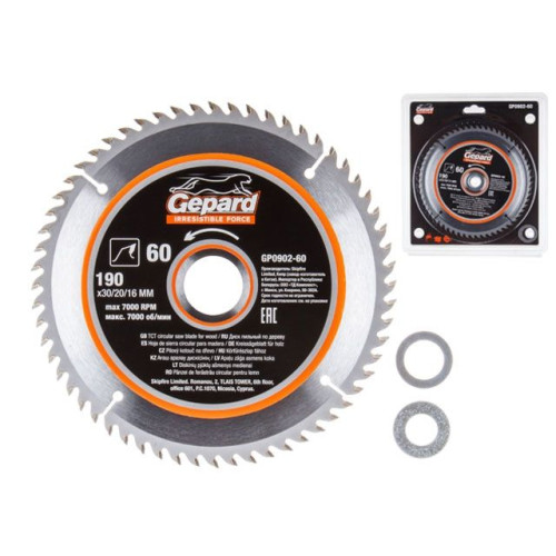 Диск пильный 190х30/20/16 мм 60 зуб. по дереву GEPARD