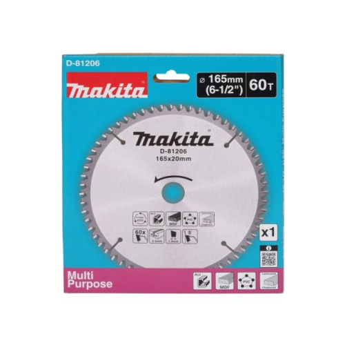 Многофункциональное пильный диск диаметром 165 мм для резки алюминия, МДФ, ДСП и ПВХ. Подходит для использования с ручными циркулярными пилами. Твердосплавные напайки для повышения эффективности. Полотно имеет 60 зубьев, пропил 2,2 мм и диаметр посадочного отверстия 20 мм.
