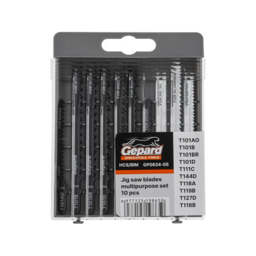 Назначение: набор пилок GEPARD используется для обработки заготовок из металла, ДСП и древесины. Пилки изготовлены из высококачественного биметалла/высокоуглеродистой стали и имеют универсальный Т-образный хвостовик. Для прямого и фигурного пропила, быстрого и чистого реза. Являются сменными пильными элементами для электролобзиков.