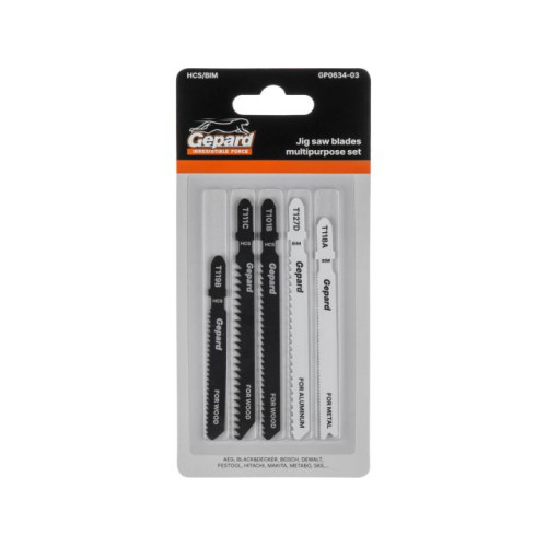 Назначение: набор пилок GEPARD используется для обработки заготовок из металла, ДСП и древесины. Пилки изготовлены из высококачественного биметалла/высокоуглеродистой стали и имеют универсальный Т-образный хвостовик. Для прямого пропила, быстрого и чистого реза. Являются сменными пильными элементами для электролобзиков.