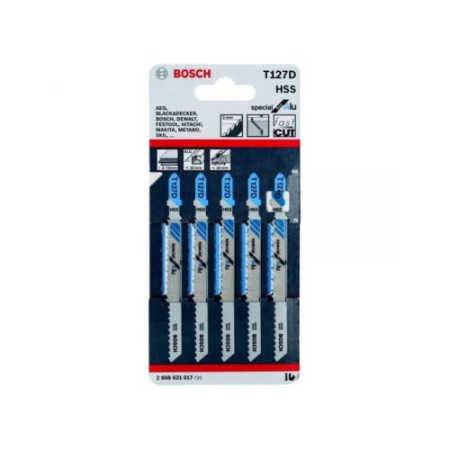 Пилка для электролобзика BOSCH Special for Alu T127D 5 штук (2608631017) позволяет выполнять быстры прямые пропилы в металле. Геометрия разведенных зубьев с крупными овальными углублениями предназначена для быстрых пропилов. Полностью закаленное полотно из высококачественной быстрорежущей стали подходит для пиления алюминия и других цветных металлов. Средний прогрессивный шаг зубьев (3,0 мм) позволяет пилить листы алюминия толщиной 1530 мм и алюминиевые трубы и профиль диаметром до 30 мм. Для лобзиков с системами крепления с Т-образным хвостовиком.