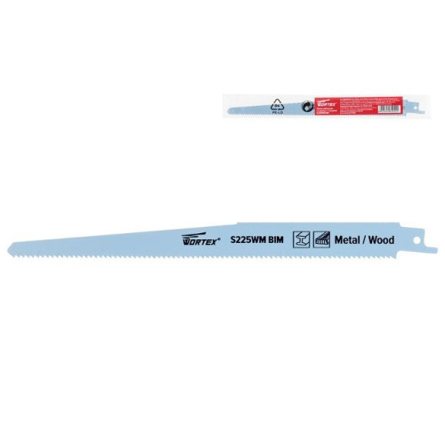 Пилка сабельная по дереву с гвоздями S225WM (1 шт.) WORTEX высокоуглеродистая сталь HCS, 225 мм длин