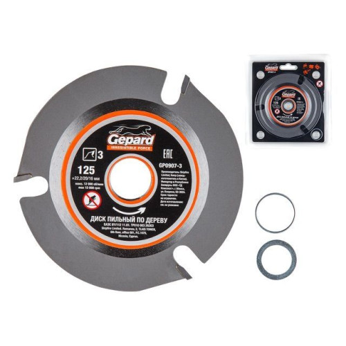 Диск пильный 125х22.2/20/16 мм 3 зуб. по дереву GEPARD