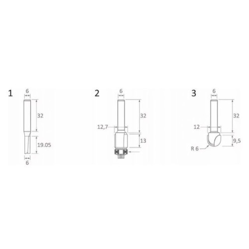 Набор Makita D-30209, предназначен для фрезеров Макита, состоит из трех фрез: Диаметр режущей части: 1 фреза-6 мм, 2 фреза-12.7 мм, 3 фреза-12 мм, Длина 32 мм, Длина режущей части: 1 фреза-19.05 мм, 2 фреза-13 мм, 3 фреза-9,5 мм.