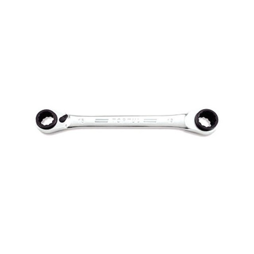 Ключ накидной 4 в 1 TOPTUL имеет двойные окончания, одно из которых подходит для болтов размером 12 и 15 мм, а второе - для болтов размером 13 и 14 мм. Ключ может применяться как трещотка. Механизм храповика имеет переключатель и способен работать как на зажим, так и на отворот.