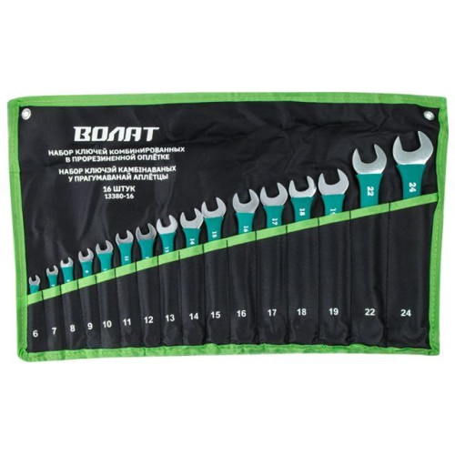 Набор ключей комбинир. 6-24мм 16шт в прорезиненной оплетке ВОЛАТ