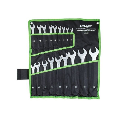 Размеры ключей в комплекте, мм: 8, 9, 10, 11, 12, 13, 14, 15, 16, 17, 18, 19, 21, 22, 24, 27, 30, 32,