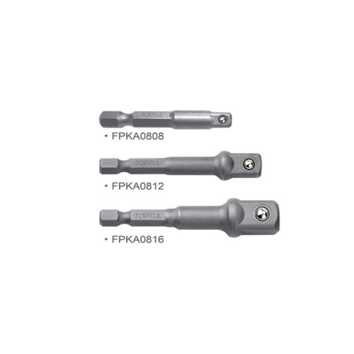 Набор переходников 14 под шуруповерт TOPTUL 3 предмета (GAAR0301) дает возможность использовать торцевые головки вместе с шуруповертом. В комплект входят переходники на 14, 38, 12.