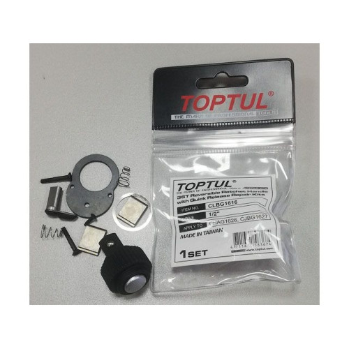 Ремкомплект TOPTUL предназначен для ремонта трещоток CHAG1626, CHAG1636, CHUG1626, CJBG1627, CMBG1627. Рекомендуется для профессионального использования.