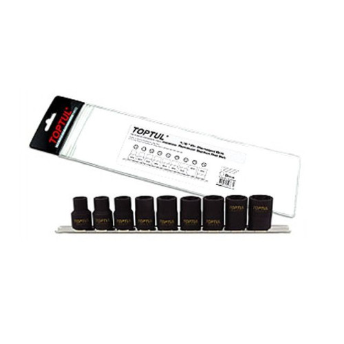 Набор головок 1/2" 10-19мм для сорв. граней 9предм. на подвесе TOPTUL