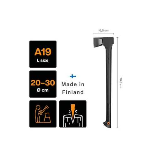 Топор-колун Solid A19 FISKARS используется для раскалывания бревен среднего размера 20-30см. Безопасное, неразъемное соединение топора и вала. Превосходный дизайн лезвия для гарантированной остроты. Сверхлегкий и прочный вал FiberComp™ делает топор практически неразрушимым. Антифрикционное покрытие позволяет легко проникать в древесину, а также защищает лезвие от ржавчины и пыли. Идеальный баланс веса между головкой и валом для максимально безопасного, комфортного и эффективного использования.