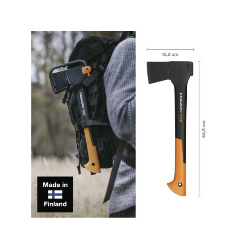 Топор универсальный X10 S FISKARS подходит для рубки небольших деревьев, заготовки щепок для костра. Благодаря небольшому размеру этот топор очень удобно носить с собой в походах, на рыбалке и использовать в других видах активного отдыха на открытом воздухе.