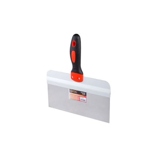 Фасадный шпатель - инструмент первой необходимости для специалиста по отделке и ремонту. Ровное жесткое полотно позволяет получать идеальный результат при нанесении шпатлевки или штукатурки на стены. Материал шпателя - нержавеющая сталь - не боится даже агрессивных сред, благодаря чему шпатель прослужит долго.