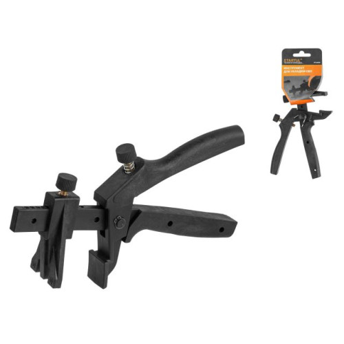 Инструмент для СВП - специально разработанный инструмент, предназначенный для надежной фиксации клина в отверстии зажима. Щипцы (зажим) помогает ускорить процесс укладки плитки и увеличить качество производимых работ. Он позволяет профессиональным плиточникам в несколько раз ускорить процесс укладки и добиться гарантированного результата.