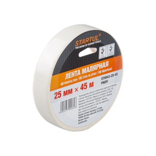 Лента малярная 25ммх45м STARTUL PROFI (ST9043-25-45), белая