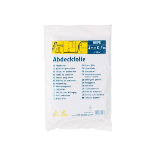Пленка изготовлена из полиэтилена высокого давления, толщина 4,5 мкм, 50м2, HDPE. Применяется при ремонтных и отделочных работах для защиты поверхностей от пыли, грязи, краски и т. п.