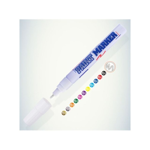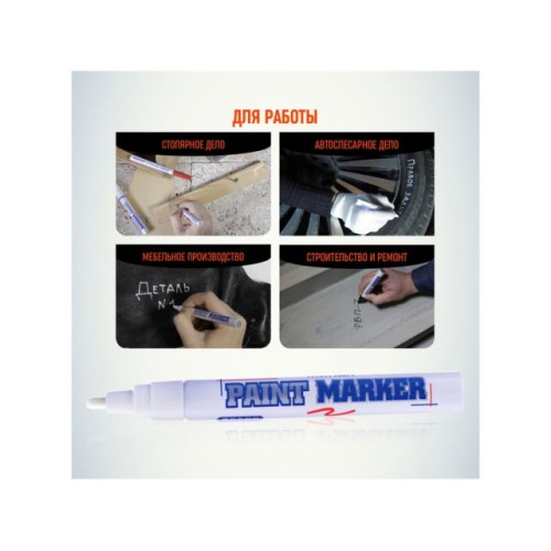 Маркер перманентный на основе жидкой краски MUNHWA белый (PM-05) - профессиональный лаковый маркер на нитрооснове. Пишет на всех типах поверхностей: металл, дерево, резина, бетон, стекло, кожа. Подходит для реставрации дефектов на бытовой технике, обуви, кузове автомобиля, а также надписей на каменных плитах. Корпус маркера изготовлен из прочного алюминия. Клапанный механизм пишущего узла исключает растекание и разбрызгивание краски, преждевременное пересыхание маркера. Благодаря высококачественным чернилам, краска ложиться на поверхность равномерным и однородным слоем, полностью закрашивая обрабатываемую поверхность, быстро сохнет. После высыхания надписи обладают свето- и водостойкостью, термостойкостью, устойчивостью к механическим воздействиям.