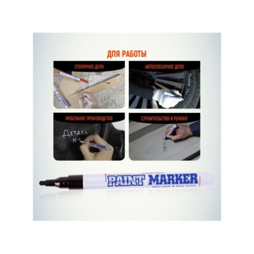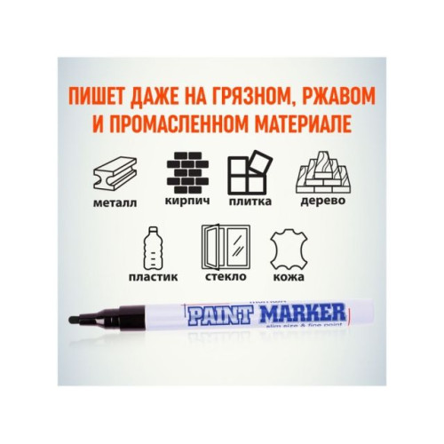 Маркер перманентный на основе жидкой краски MUNHWA черный (PM-01) - профессиональный лаковый маркер на нитрооснове. Пишет на всех типах поверхностей: металл, дерево, резина, бетон, стекло, кожа. Подходит для реставрации дефектов на бытовой технике, обуви, кузове автомобиля, а также надписей на каменных плитах. Корпус маркера изготовлен из прочного алюминия. Клапанный механизм пишущего узла исключает растекание и разбрызгивание краски, преждевременное пересыхание маркера. Благодаря высококачественным чернилам, краска ложиться на поверхность равномерным и однородным слоем, полностью закрашивая обрабатываемую поверхность, быстро сохнет. После высыхания надписи обладают свето- и водостойкостью, термостойкостью, устойчивостью к механическим воздействиям.