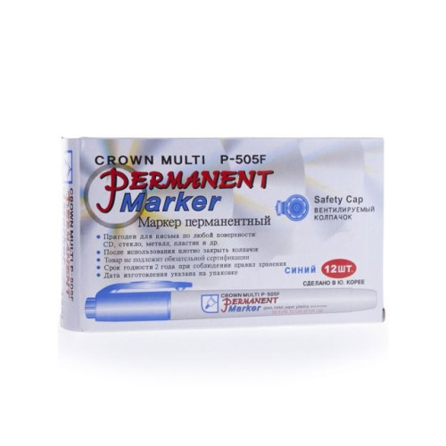 Маркер перманентный CROWN Multi Marker Super Slim синий (P-505Fblue) - деликатная маркировки на всех типах поверхностей: металл, дерево, резина, бетон/камень/кирпич, стекло, пленка, картон и др, CD диски. Круглый наконечник из высококачественного фиброволокна создает линии толщиной 1 мм. Чернила на спиртовой основе. Цвет чернил - синий. Корпус маркера изготовлен из прочного пластика эргономичной формы. Чернила устойчивы к климатическим изменения (дождь, туман, солнце), не стираются и не выцветают в течение длительного времени (до 3-х лет в зависимости от эксплуатации промаркированного изделия), оставляют четкую и однородную линию, безопасны для использования и не содержат ксилол и толуол. Перманентный маркер Crown - качество, проверенное временем.