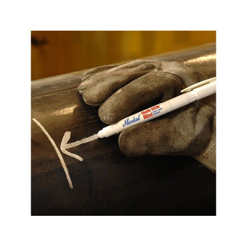 Quik Stik Mini компактный маркер с твердой краской в пластиковом корпусе идеально подходит для тонкой маркировки на гладких и шероховатых поверхностях. Это уменьшенная версия Markal Quik легко помещается в карман или пояс с инструментом. Краска ложиться ровным однородным слоем и не оставляет комков, надписи имеют хорошо видимые линии. Маркировка устойчива к атмосферным осадкам, УФ-излучению, не боится проливов растворителей, бензина, масел и других агрессивных веществ. Корпус из прочного пластика предотвращает стержень маркера от повреждений и обеспечивает длительное использование в промышленных условиях. Дизайн маркера с винтовым механизмом для выдвижения стержня обеспечивает чистоту рук, одежды и инструменты на протяжении всего использования маркера.
