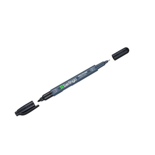 Двусторонний перманентный маркер Berlingo позволяет варьировать толщину линии от 0,5 до 1 мм. Заправлен стойкими и яркими чернилами на спиртовой основе. Подходит для использования на большинстве поверхностей, включая прозрачный пластик - не растекается. Цвет: черный.