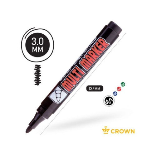 Маркер перманентный фетровый CROWN Multi Marker черный (CPM-800black) - маркировки на всех типах поверхностей: металл, дерево, резина, бетон/камень/кирпич, стекло, пленка, картон и др. Чернила устойчивы к климатическим изменения (дождь, туман, солнце), не стираются и не выцветают в течение длительного времени (до 3-х лет в зависимости от эксплуатации промаркированного изделия). Подходит для нанесения надписей на ржавые, промасленные и загрязненные поверхности. Подходит для нанесения надписей на охлажденную (до -20°С) и разогретую (до +60°С) поверхности. Подходит для применения в помещении, не содержит ксилол и толуол.