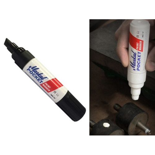Markal Pocket - это карманный перманентный маркер на основе быстросохнущей жидкой краски, не содержащей ксилола и без запаха. Им можно наносить долговременную маркировку почти на любые поверхности. Благодаря его реверсивному наконечнику (клиновидному и кругло-плоскому) возможно наносить маркировку самых разных размеров. Плоская сторона наконечника разработана специально для хорошо видимой точечной маркировки.