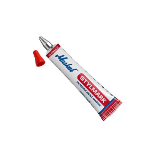 Маркер с металлическим шариковым наконечником Markal Stylmark предназначен для нанесения отметок практически на любые поверхности. Алюминиевый тюбик содержит краску густой консистенции, позволяющую маркировать шероховатые, вертикальные и потолочные поверхности, и