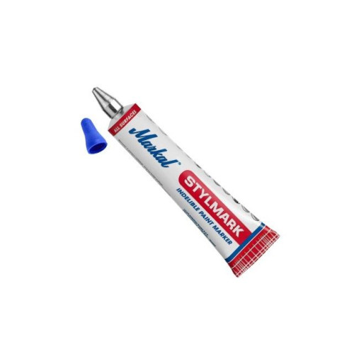 Маркер с металлическим шариковым наконечником Markal Stylmark предназначен для нанесения отметок практически на любые поверхности. Алюминиевый тюбик содержит краску густой консистенции, позволяющую маркировать шероховатые, вертикальные и потолочные поверхности, и