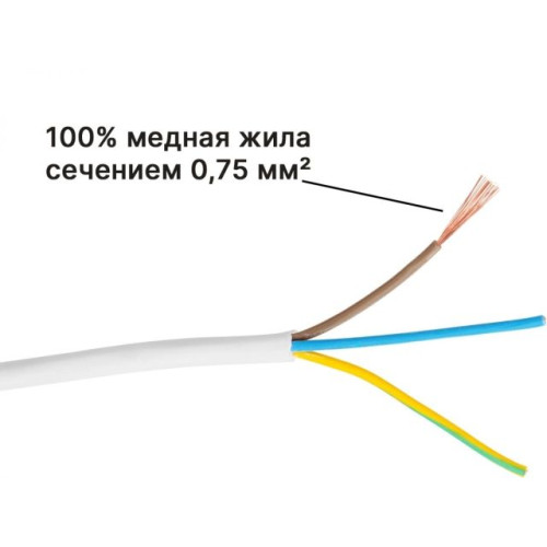 Реальное сечение провода из чистой меди гарантирует работоспособность удлинителя при подключении нагрузки до 2200Вт.