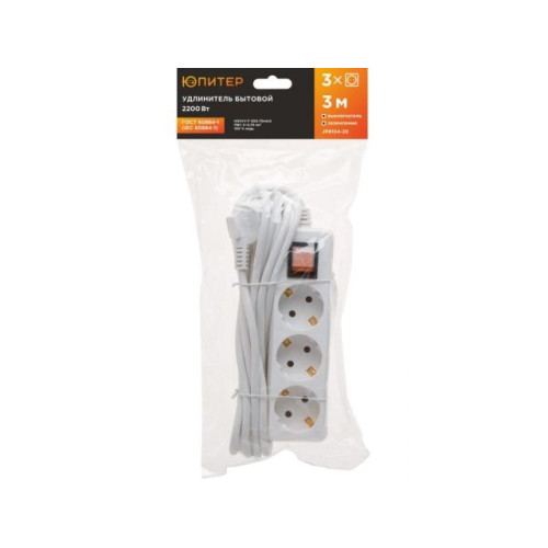 Удлинитель ЮПИТЕР изготовлен только из качественных материалов в соответствии с ГОСТ60884-1 и предназначен для подключения бытовых электрических приборов к электрической сети переменного тока внутри помещения.