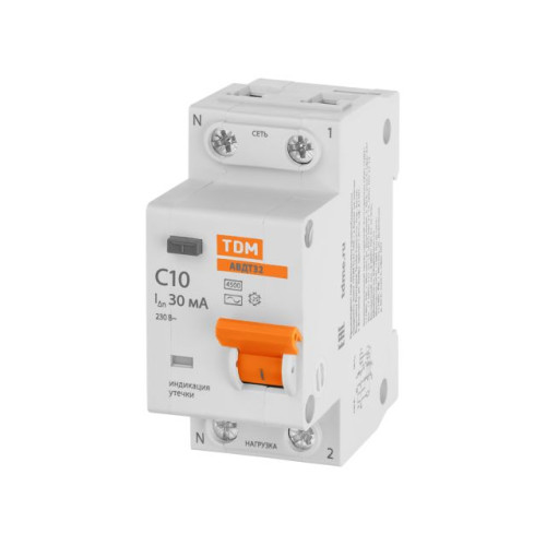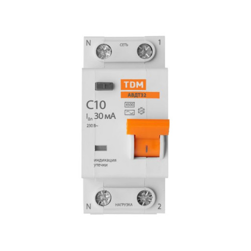 Выключатель дифференциальный автоматич. АВДТ 32 2P(1P+N) C10А 30мА 4,5кА тип АС TDM