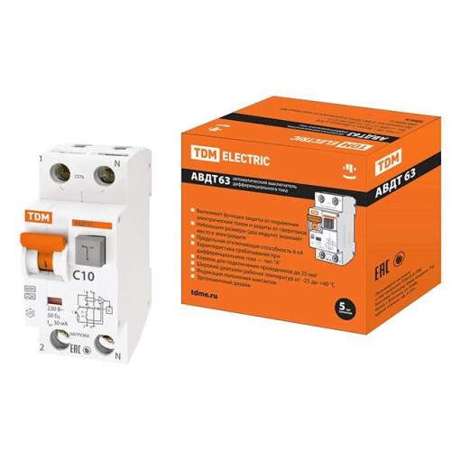 Выключатель дифференциальный автоматич. АВДТ-63/2Р C10 30мА тип А TDM